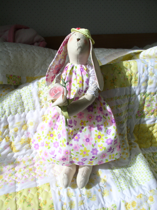 Давайте, если согласны на всю ткань и синтепон, а я вам солью принцессу на горошине и зайка в розовом, только сразу скажу что они будут в другой одежде(только если хотите зайка будет с таким же цветком и в шляпке, только шляпка и платье будут другого цвета.) Я стараюсь копии прям не шить поэтому ткани на одежду беру по чуть-чуть, чтоб повторений не было)