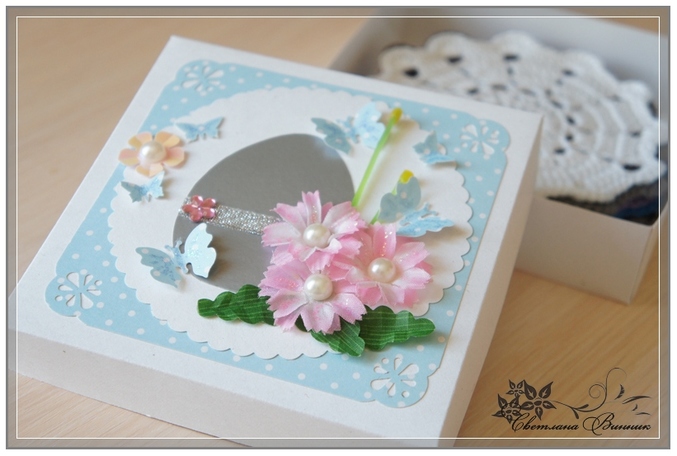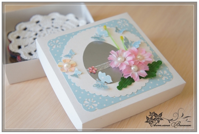 СкрапбукингДля тётушки вязала чайный набор (подарок на Пасху). Решила, что приятнее его будет получить в подарочной коробке. Вот что из этого получилось. Так как пробую силы в новом для меня виде рукоделия, то очень буду признательна советам.