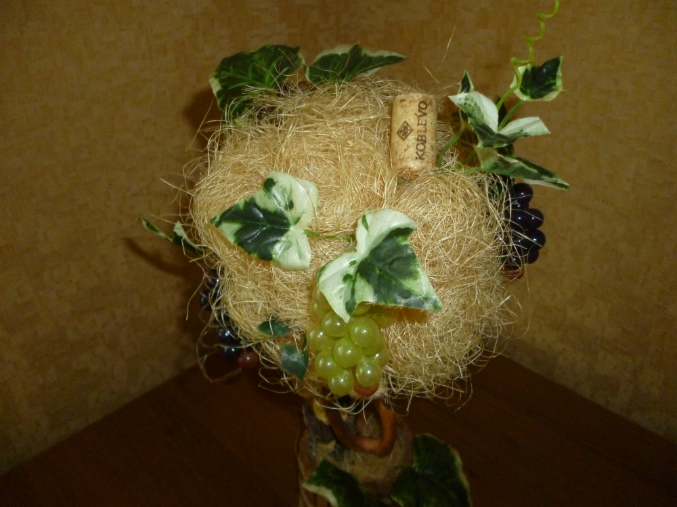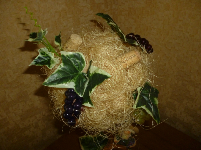 По-моему, так отлично! Правда пару пробок бы добавила, но 2-3 - не больше! Вместо одной виноградной грозди, мне кажется их многовато) Ну это на мой вкус)) А так интересный вариант винного дерева, получилось по-новому, и шары из сизаля такие творчески небрежные.. Хорошо!