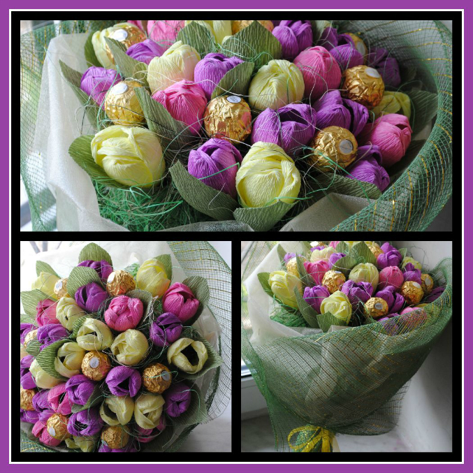 Если еще не поздно, я скажу свое мнение. Букетик хороший, цветовая гамма - тоже, меня смущают только близко близко друг к другу натыканные цветы...... Как-то пестровато кучковато они смотрятся, может что-нибудь между ними натыкать побольше, ну типа фунтиков или листочков..... Это мое личное мнение, не факт, что оно правильное)))))))))