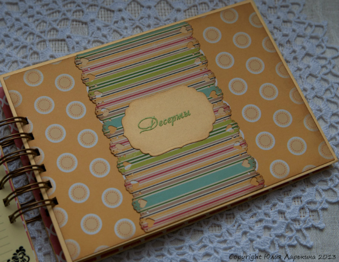 СкрапбукингВсем привет, сегодня я была на выставке в нашем городе Домодедово в качестве участника, но я не об этом хочу рассказать, а с удовольствием покажу простой, кулинарный блокнот на пружине с 5 разделителями.