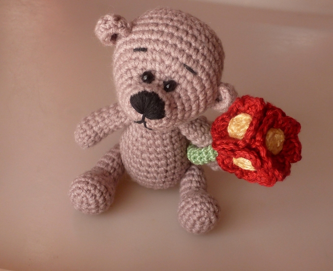 Мишка с букетиком -400р.(сидя 8см,только сидит)