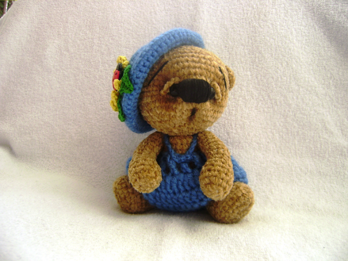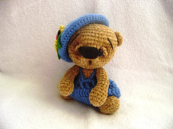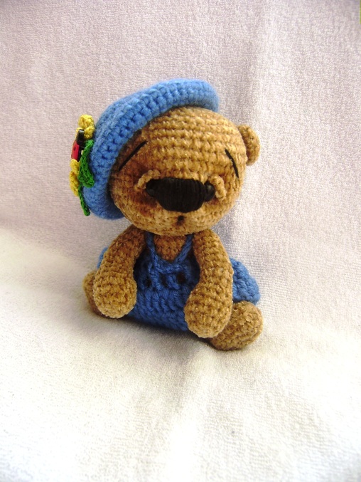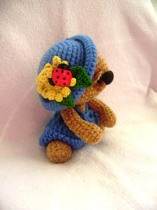 Связан крючком по описанию Жени Аксеновой, ростиком сидя 10 см, лапки на нитяном креплении, подвижны, голова шплинтовое соединение - поворачивается, очень ждет лето)))