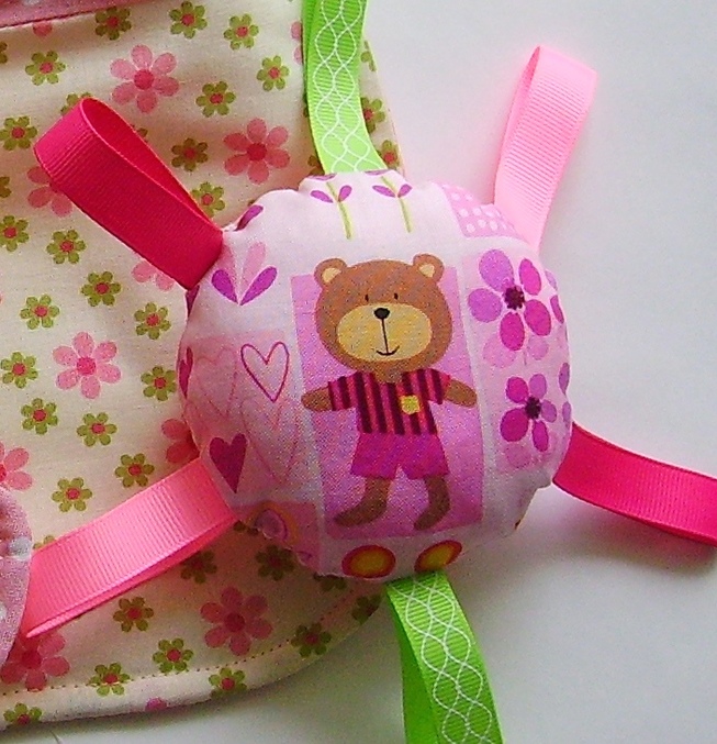 Очень люблю детскую тему-игрушки, погремушки и прочее. А новые наборы немецких тканей просто созданы для детских вещиц. Пошились три наборчика, пока показываю розовый.