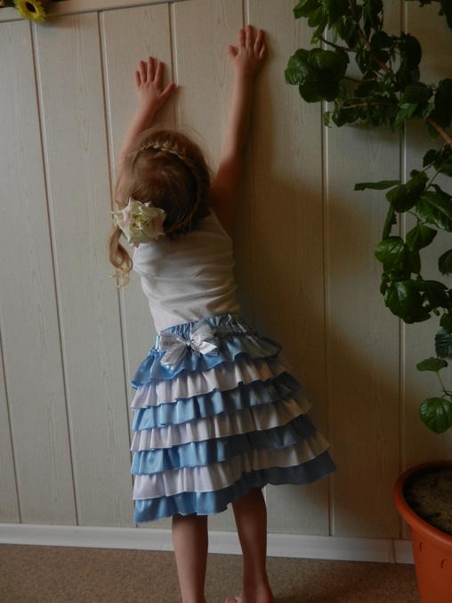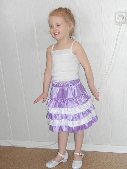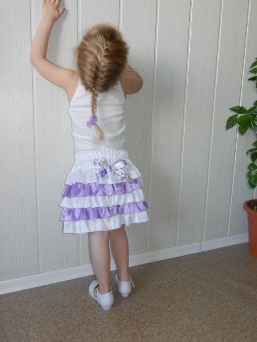 А эта юбочка (шесть воланов) + заколка -бант для волос завтра отправится в Москву для Маруськи 3,5 лет.