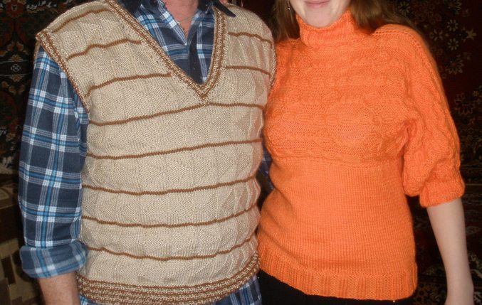 я своему папе тоже связала жилет, так даже сфоткать не успела - надел и убежал, так до сих пор и бегает, а фото нет...