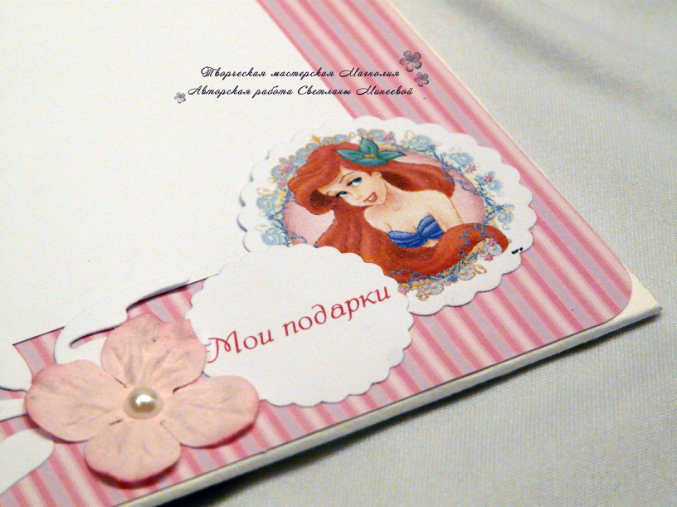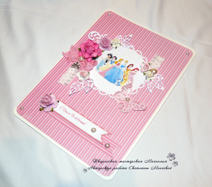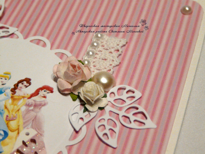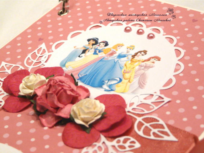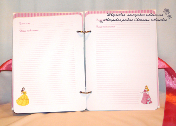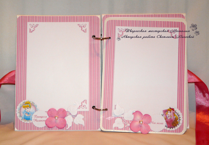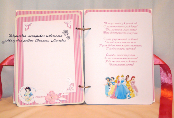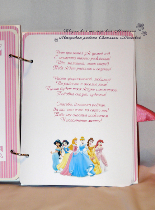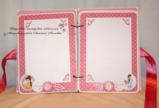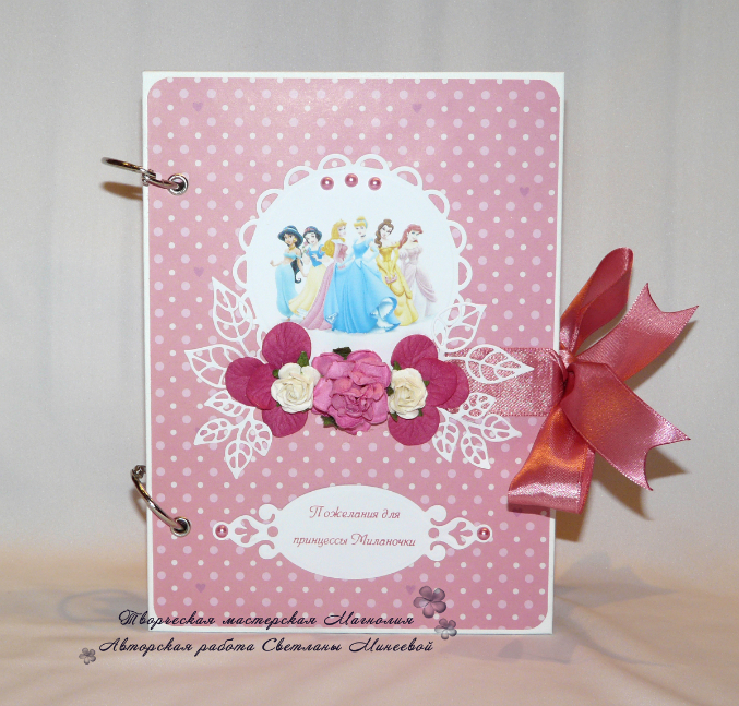 СкрапбукингЯркий розовый комплект для маленькой прицессы Миланочки, состоит из открытки и книги пожеланий в тематике принцесс Диснея
