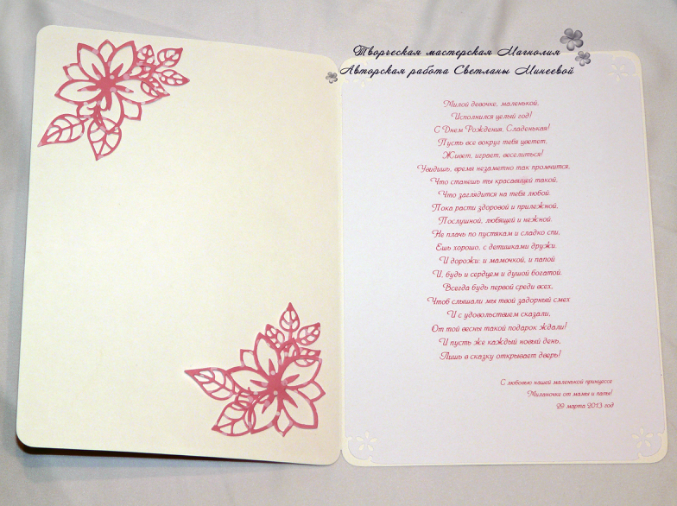 Открыточка форматом 15*21 см, в той же стилистике, внутри уже распечатанный стих-поздравление