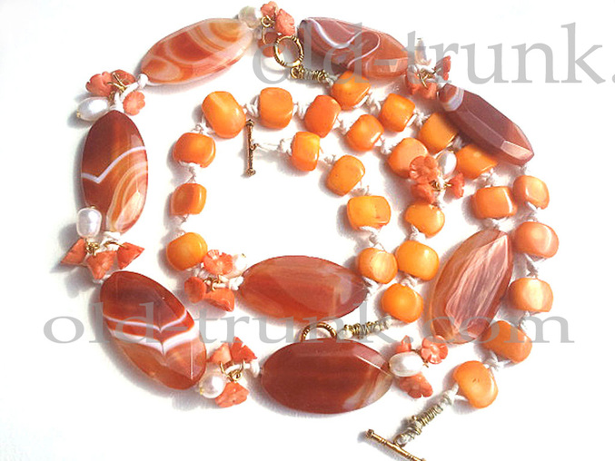 Комплект из агата, жемчуга и коралла. Цветущий атолл.