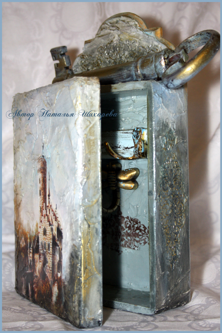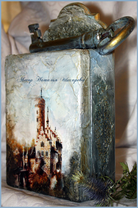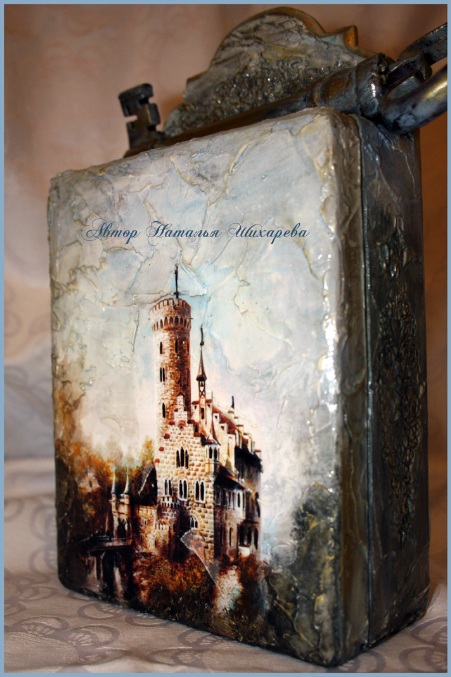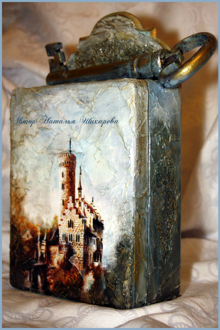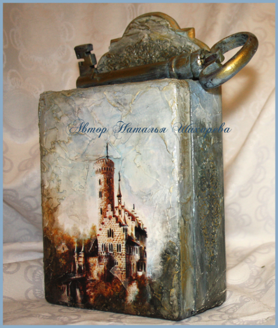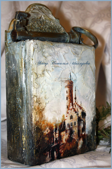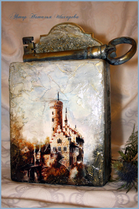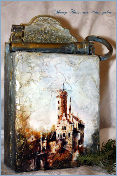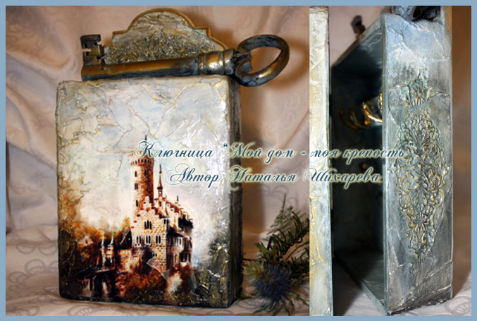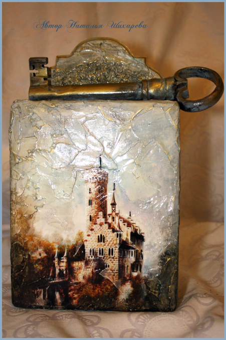 ДекупажЕсть на ББ очень креативные барышни, вот одна такая красавица @Tarabakina обратилась ко мне с просьбой воплотить для неё задумку с ключом, а ключ не простой, а семейная реликвия, тяжелый, старинный. Нужно было его как-то на ключнице увязать. Вот и придумалась тема "Мой дом -моя крепость" ...ключ, от зАмка старинного и собственно сам старинный зАмок в далеке, который на фреске я запечатлела. По бокам ажурные оттиски, кракелюры, отпечатки. Приглашаю поглядеть на результаты под катом.