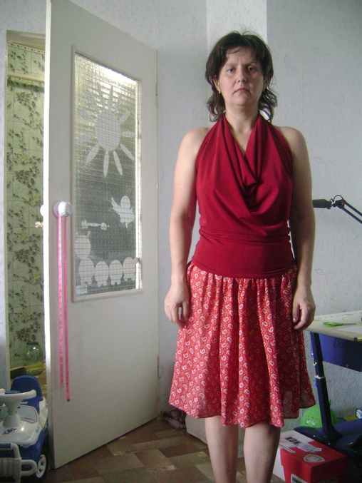 А вот и горловина (сколько МК пересмотренно, прежде чем ее шить). Еще конечно остались вопросы как на оверлоке горловину прострачить, чтоб очень ровненько получилось в конце, но это скорее дело тренировки. Может у кого есть интересные МК по шитью, поделитесь
