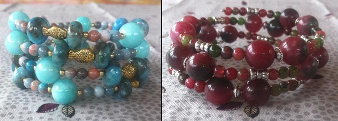 Бижутерия для слингомам. Слингобусы. Грызунки.Браслет на мэмори-проволоке с амазонитом разных диаметров и лазулитом, в которых плавают позолоченные рыбки и красно-зелёный турмалиновый браслет.