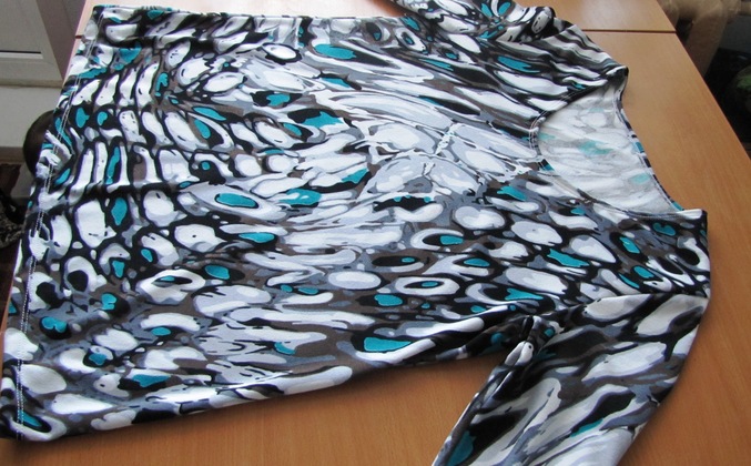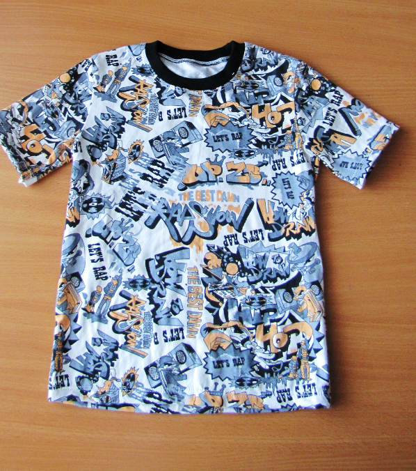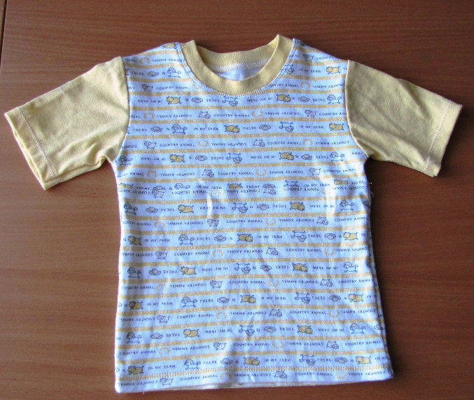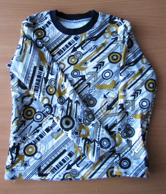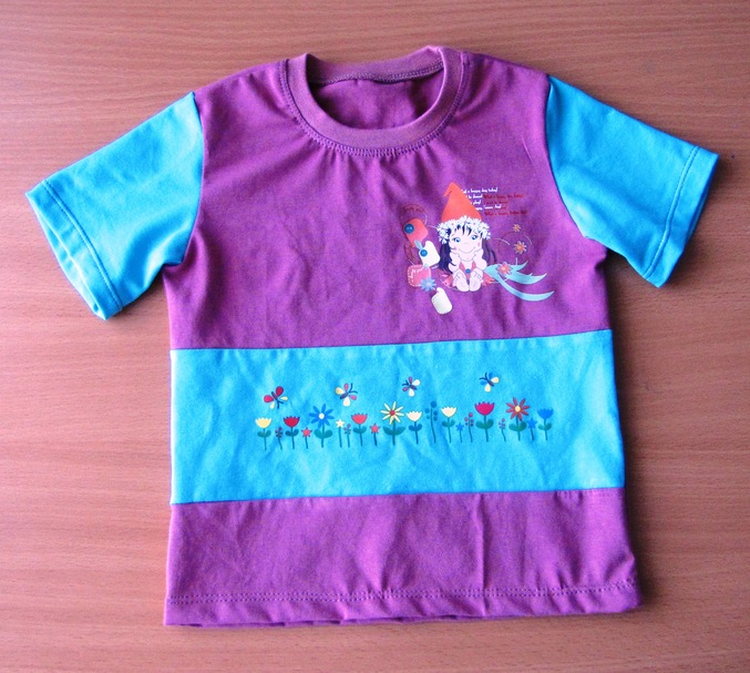 Футболочка из остатков. Уж больно хороший интерлок попался, никак не кончался,зараза))) даже из кусочков (виден шов на груди) сшилось для младшей на вырост, пригодится. 98рост