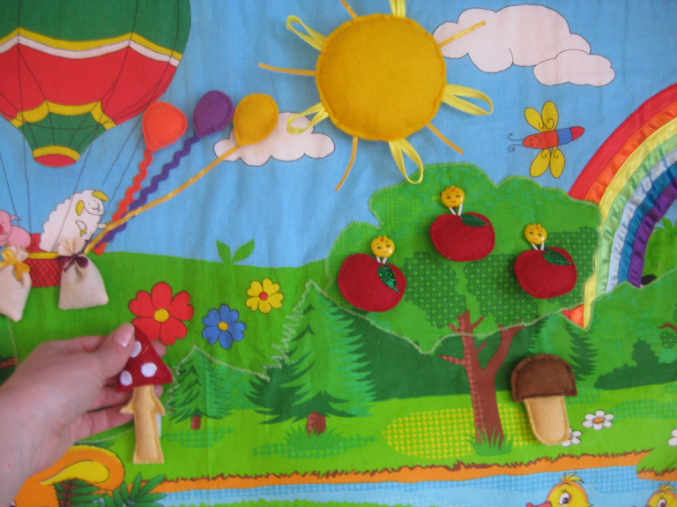 Солнышко на липучке, шуршит, грибы на липучках, Яблочки на пуговицах, крона яблони шуршит...