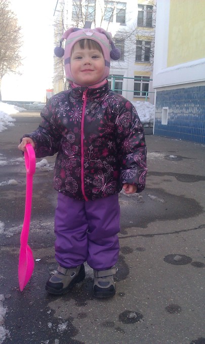 Прошлой весной тоже был комплектик, как обычно, на скорую руку, в последний момент, специально заузила горловину, но когда нам куртка стала впритык оказалось. что очень сильно заузила и капюшон мелковат получился.... Вот только фото этого комплекта надо найти, всего одна фотка как-то получилась.