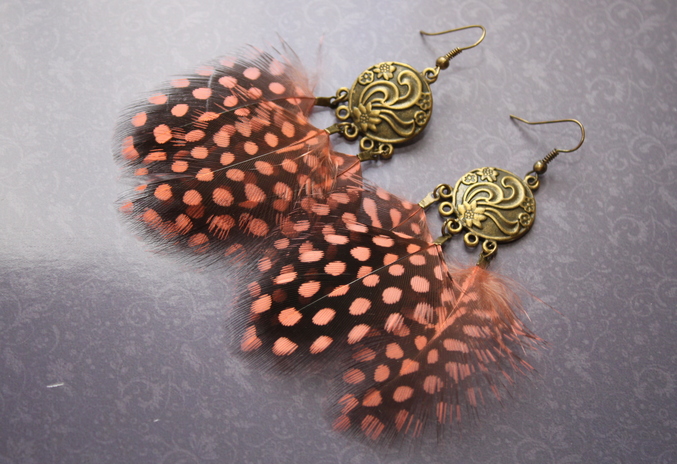 4. Серьги с перышками цесарки