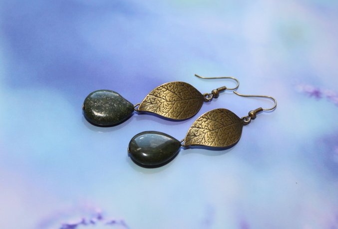 3. Серьги "Natur" Фурнитура под бронзу, зеленый пирит