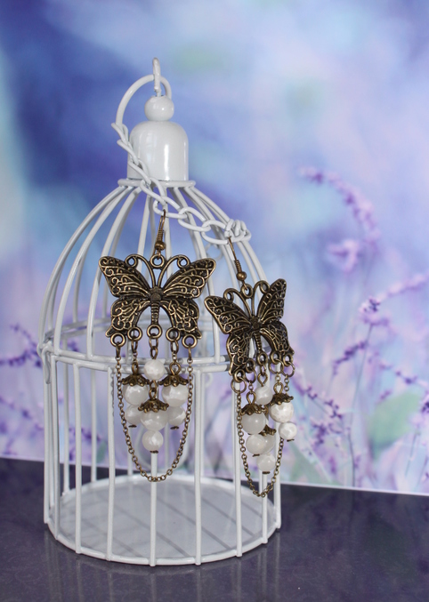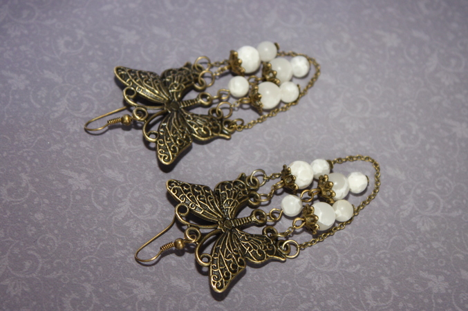 1. Серьги "Весенние бабочки" Бронзовая металлофурнитура, агат. Длина со швензой 8,5 см