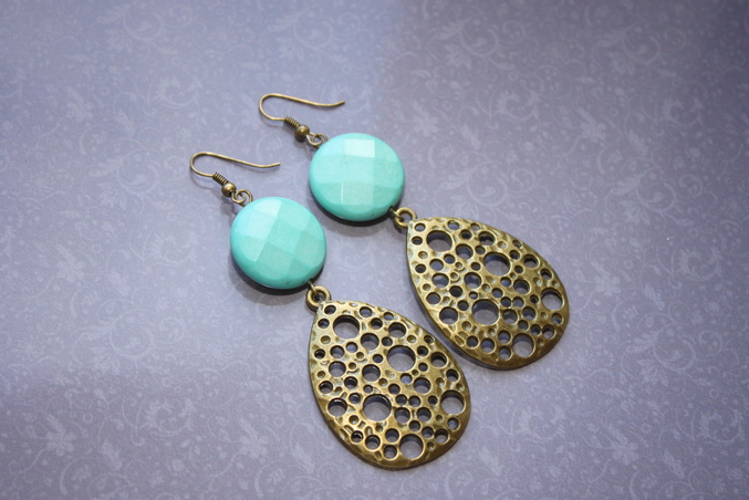 2. Серьги "Крупные капли" Фурнитура под бронзу, турквенит