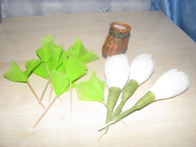 Девочки ездила в Идеал...за всякими штучками для своего первого букетики и очень мне понравились плетеные башмачки....у меня вчера знакомая родила...и решила я что это отличный повод...чтобы подарить ей конфетные башмачек....цветы решила сделать тюльпаны...но как-то они больши кажутся для таких крошек...вот что уже есть...пожскажите как лучше скомпонавать...или может кто подкинет фотографии букетиков в башмачке??