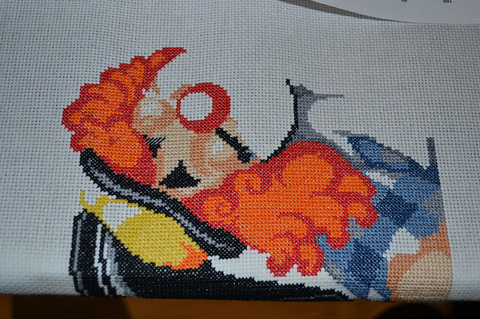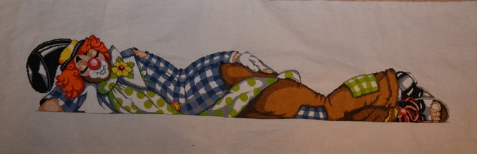 Эту схему я нашла давно, и решила, как что этот клоун будет висеть над кроваткой детской, начала вышивать до родов, потом я 2 года не вышивала(некогда было) и вот решила несколько месяцев назад, что пора всё таки повышивать. До родов я вышила немного,вот.