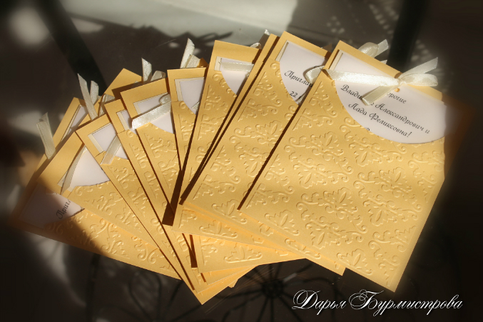 Скрапбукинг...для маминого юбилея.12 штук.Наверное многие меня поймут-нет более сложного клиента,чем мама...Особенно если мама руководитель с большим стажем,и человек с гениальным вкусом (по кр мере она так считает) плюс презрительное отношение к скрапу...Уф,в общем я не об этом) Согласовывалось все до мельчайших подробностей-в итоге мы довольны,и я и мама) Будут еще банкетные карточки аналогичные-в конце месяца.Использованы 2 вида перламутрового картона-золотой и ванильный.