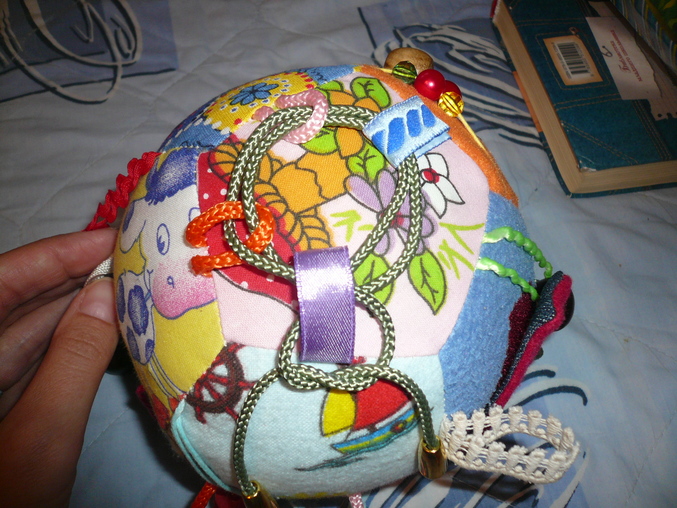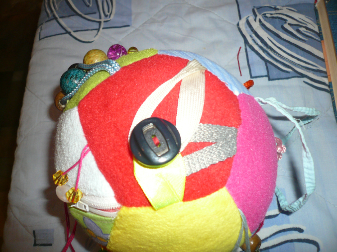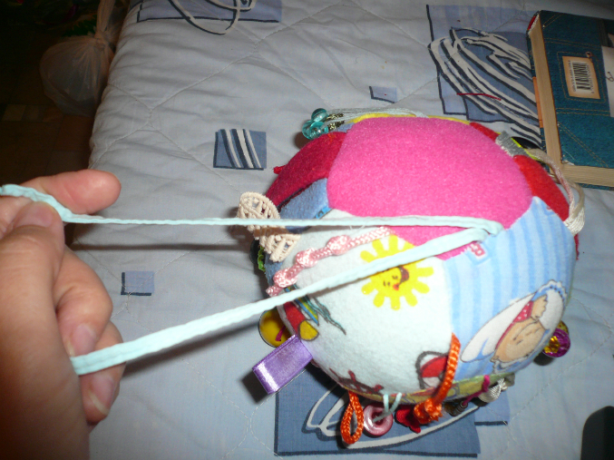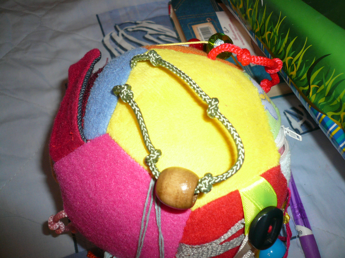 Ну и как всегда много всяких сосательных-ковырятельных-искательных вещей)) Шнурки с узелками, бусины разных форм и размеров, атласные ленточки и тд и тп