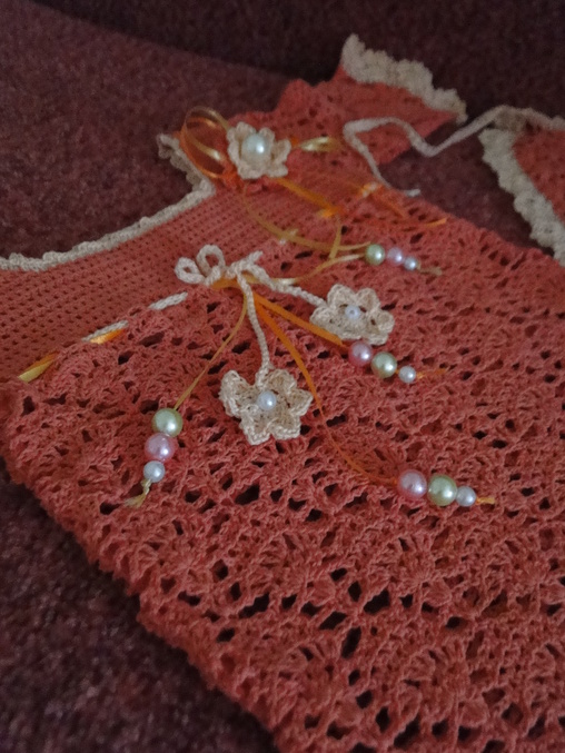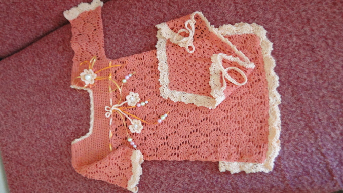 Для девочки 5 лет сочинила комплектик " Гортензия ", почему так назвала?))) узор тунички так мне подсказал, но фотограф из меня еще тот...ох(((( главное девочке комплектик ПОНРАВИЛСЯ)))