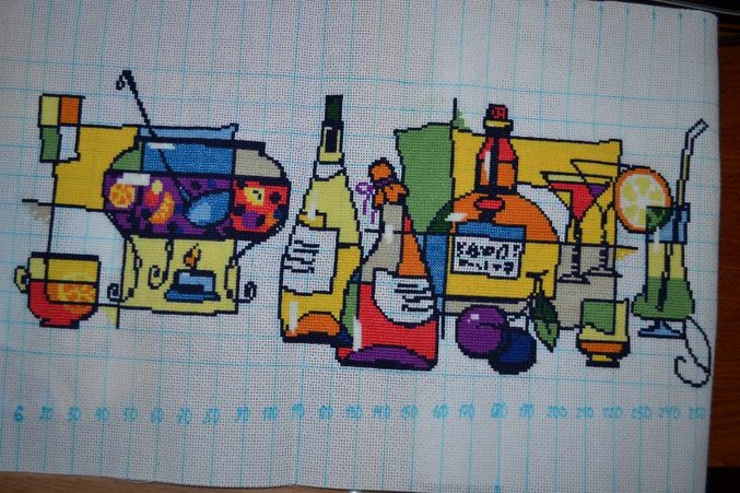 а у меня эта вышивка под названием-ТРАПЕЗА,уже висит на кухне.Да ниток осталось много.