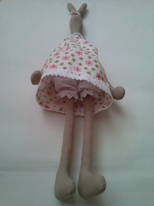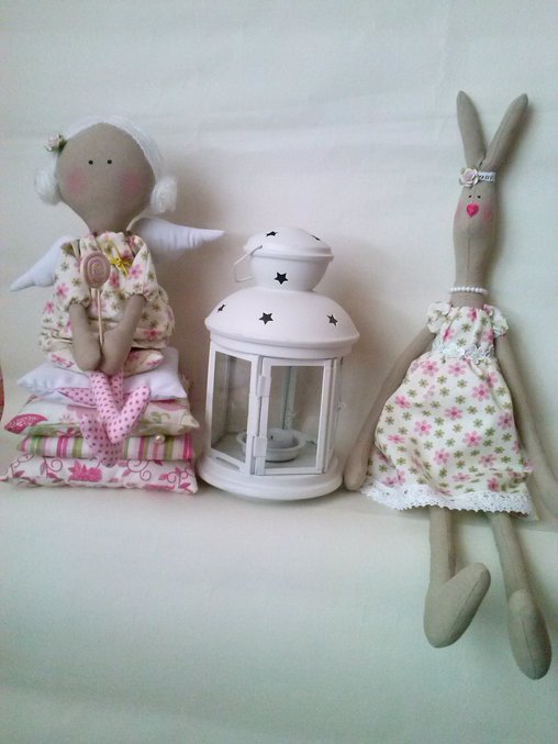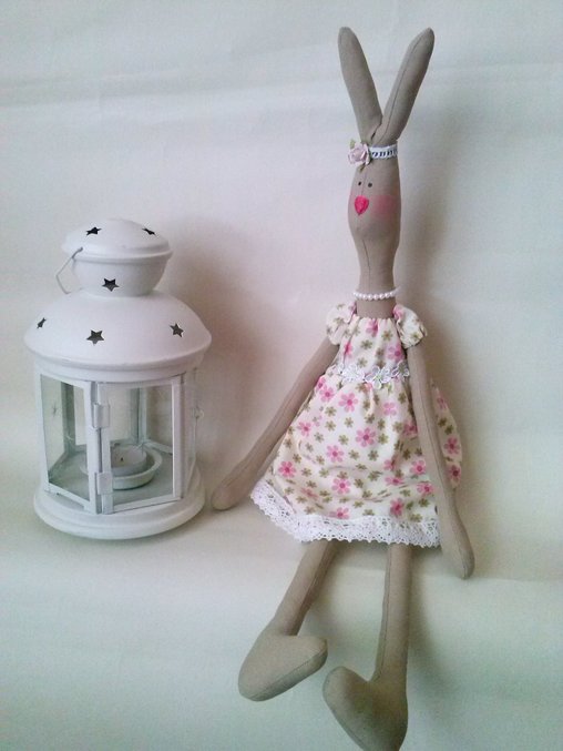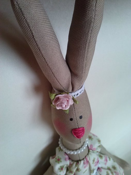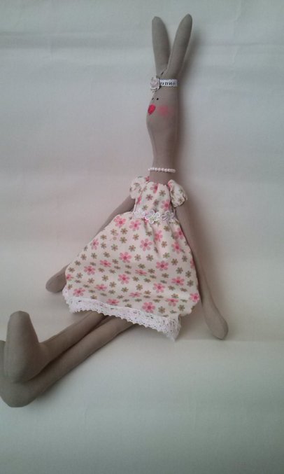 Редко шьют этих заек, а я однажды увидев их в блоге какой-то зарубежной рукодельницы-очень ими прониклась) и вот сшила-ура!))) Они теперь мои самые любимые любимки!))) Моя красавица сшита из габардина, немецкого хлопка, кружева. Может только сидеть с опорой и без. Вполне может быть не только украшением интерьера, но и стать любимой игрушкой малышки)