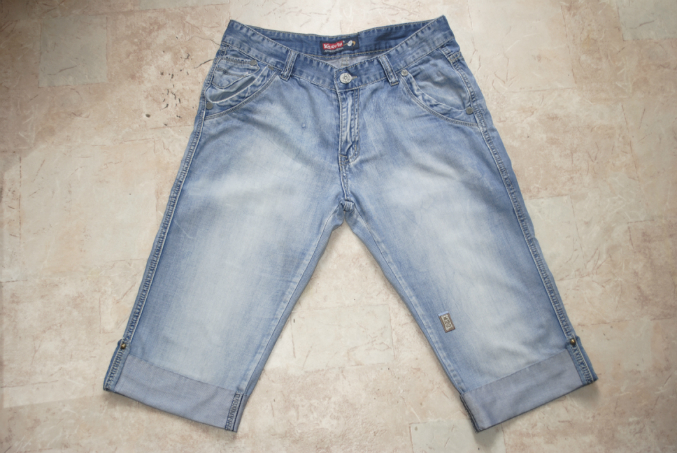 в общем были джинсы мужские. обычеые. фото до и нету даже. попросил МЧ сделать из них бриджи. вот что вышло.