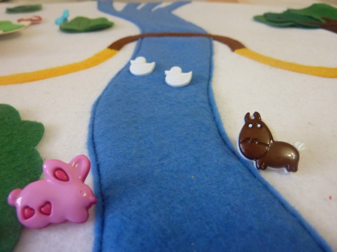 Возле реки можно встретить Иа и Кролика. Но это для бурной детской фантазии. Я не решилась их пришивать. Они свободные личности.