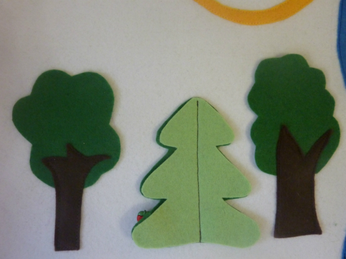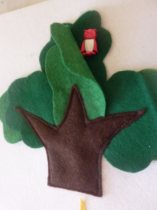 Вид в масштабе, так сказать. Жаль Танюшке не долго играть с этой игрушкой- завтра отправлю. А мы с ней и на дуб поселить успели и в дремучий-дремучий лес. Эх, с нишим арсеналом фетровых игрушек тут столько сюжетов придумать можно!!!
