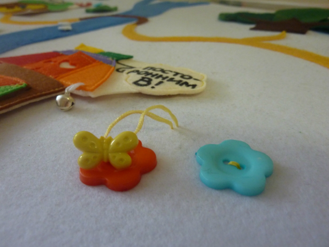 Домики и герои на липучках, чтобы их свободно перемещать по карте, да и отдельно от карты можно было играть.