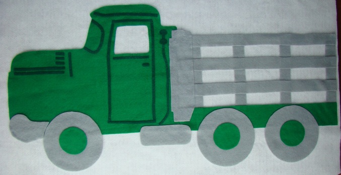 Размеры транспорта из фетра разные. Например зелёный автобус 10х13,5см