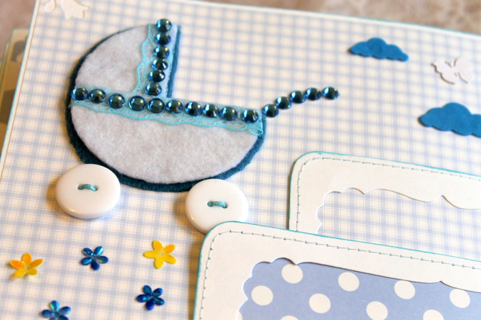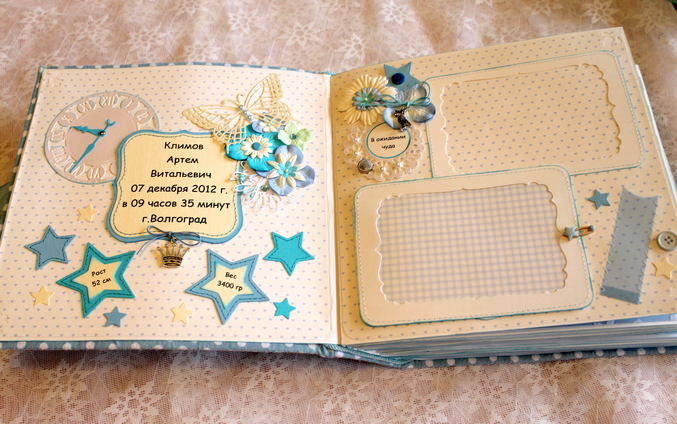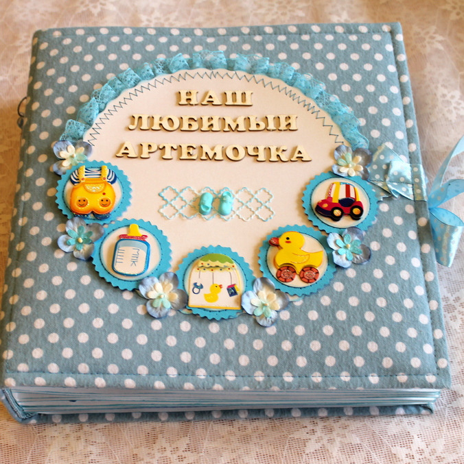 СкрапбукингНу, вот и опять я с альбомчиком для малыша из г.Волгограда. ( что-то последние три заказа из одного города) . Все детали, элементы, надписи и кармашки - желание заказчицы, даже бумага и ткань была выбрана ею.