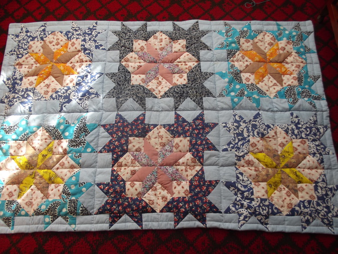 ...появилась у нас в доме! Это подарок моему сынуле - одеяло в стиле пэчворк!Их шьёт сестра моего мужа, и они у неё все разные, то квадратиками, то кружочками, наше вот треугольниками. Нам так нравится!!!! Мне бы не хватило терпения сшить ТАКУЮ КРАСОТУ!!!! я пробовала....