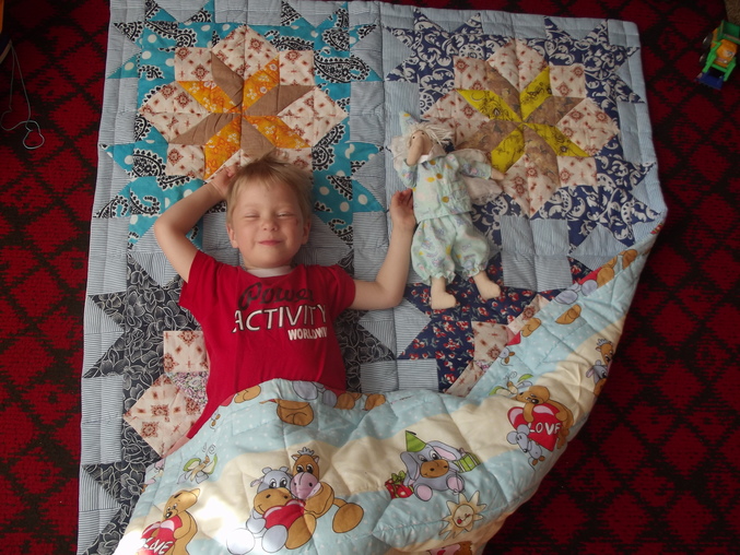 суперская фотка нижняя!! одеяло супер! у меня тоже сестра такие шила раньше, когда у неё время было) сынуль супер! и сплюх супер! ты сама сплюха сшила? прям тоже захотелось такого попробовать сшить.