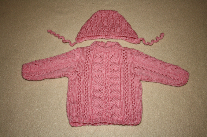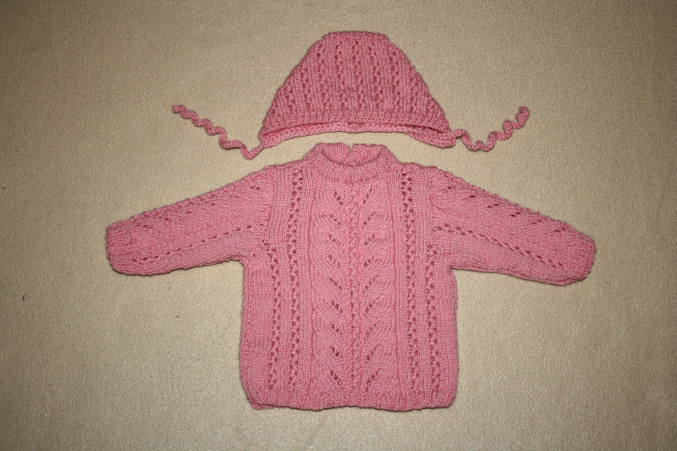 Связала в подарок новорожденной девочке вот такую кофточку и чепчик. Застежка сзади, маленькие кнопочки. Поняла как сложно вязать не себе, а кому-то: все ниточки надо убрать, шовчики чтобы были аккуратные и т.д. вот я намучалась!Горло так тоже в первый раз вязала, обычно себе просто крючком обвязывала и все.