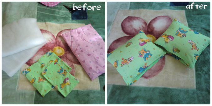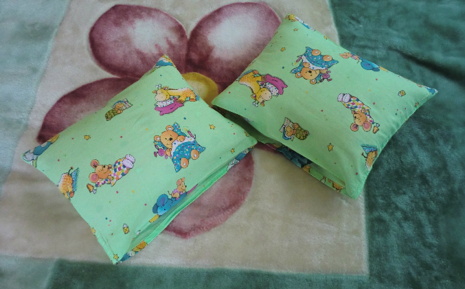 Купили мы доче набор в кроватку: бортики, подушка и одеялко. Все бы ничего, но подушка большая и тонкая. А в постельном к тому же предполагалось 2 подушки.