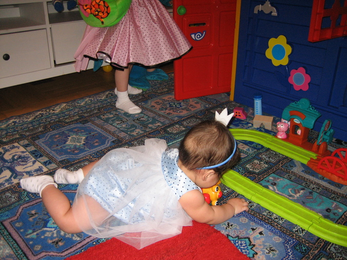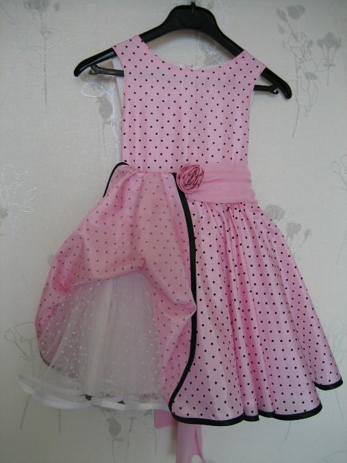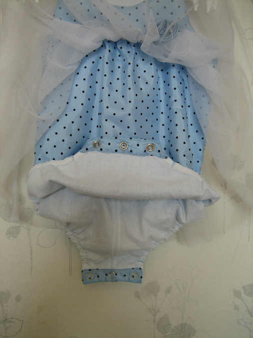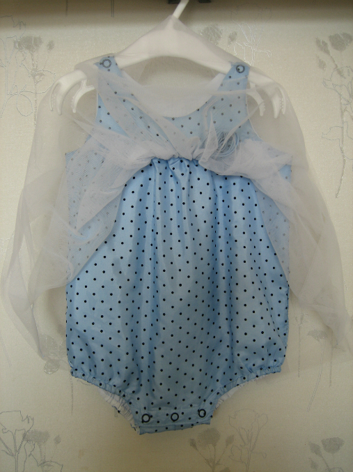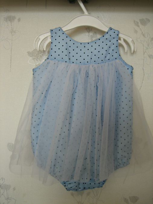 Олюшке - бодик - псевдоплатье))))), она все время почти была на руках (6мес.) и очень мне не хотелось постоянно поправлять платье, чтобы трусики прикрыть)))) вот и придумалось доработать модель бодика легкой юбочкой (бодик из Burda special 2012 детская мода):