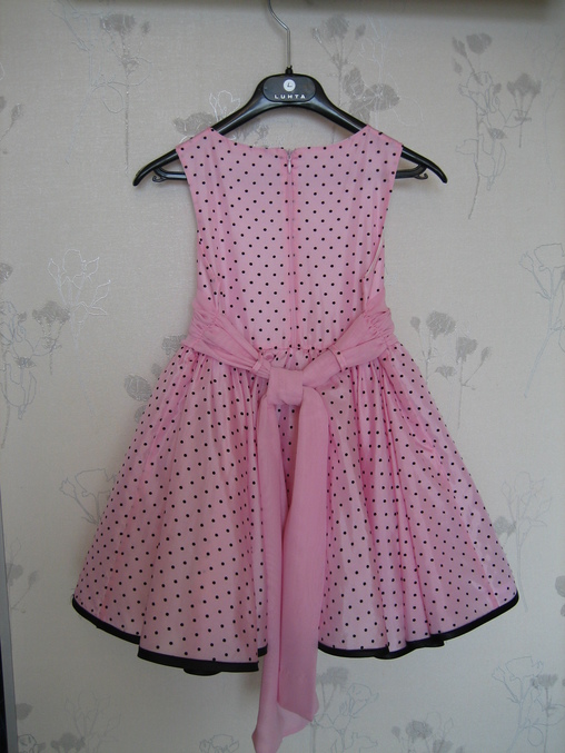 По ткани - названия не знаю, но не атлас - больше на иск.шелк похоже, просвечивает, лицевая сторона как атлас - с отливом, изнанка матовая, горошинки - бархатные - при стирке, кстати, не осыпаются. Когда покупала на ней даже ценника не было - продавец хозяйке магазина звонила так же на пальцах обьясняла. Поэтому даже и не знаю что это, но очень хорошо шьется.))))