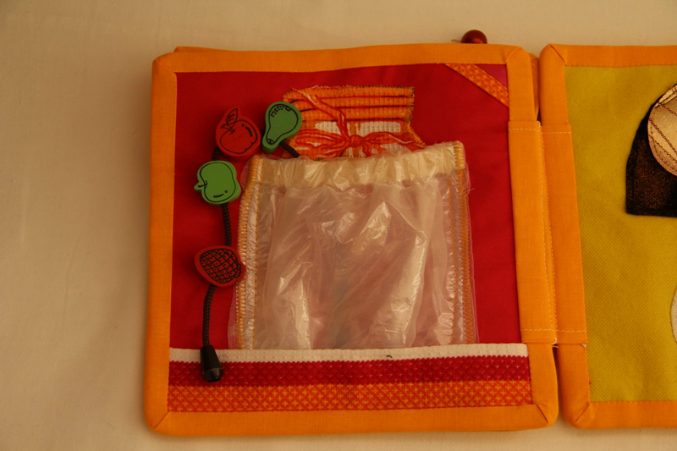 4 страница: Осенью делают заготовки (банка с компотом шуршит, внутри банки на шнурке различные деревянные фрукты (яблоко, груша, клубника) – их можно вытягивать, перебирать и называть).