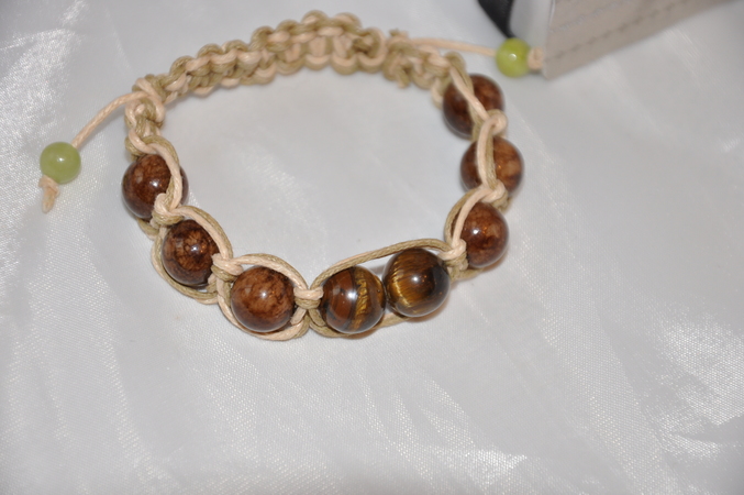 Тигровый глаз. Ксюша сказала, что подходит к моему знаку. красивый. к моему коричневому свитеру. заметили, к каждому браслету Ксюша подбирает разные нити?