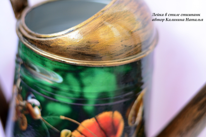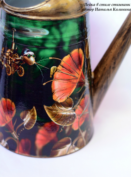 ДекупажДелалась на заказ в подарок...вот не скажу кому))) Интересно будут ли какие-то предположения на этот счет, потому что заказ то очень интересный был, точнее лейка скажем так не совсем то, что принято дарить этой категории граждан, поэтому было интересно))) Как всегда без названия, что-то у меня напряженка с ними. Крутится в голове что-то механическое, а что механическое незнаю)))))