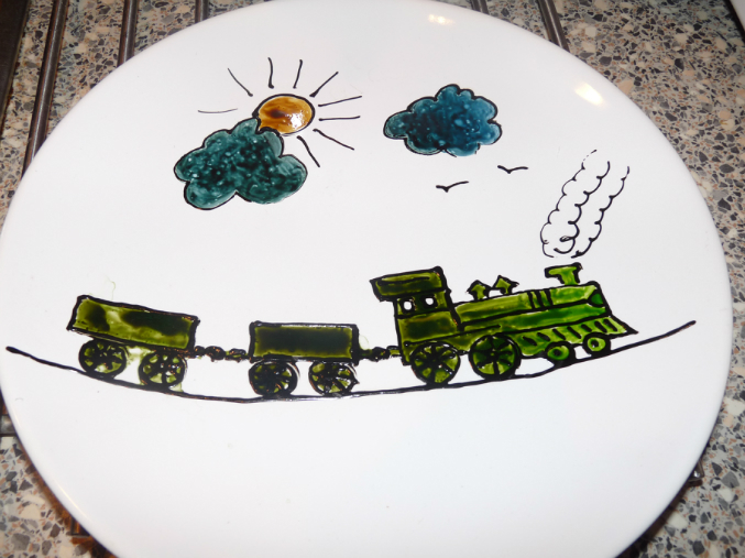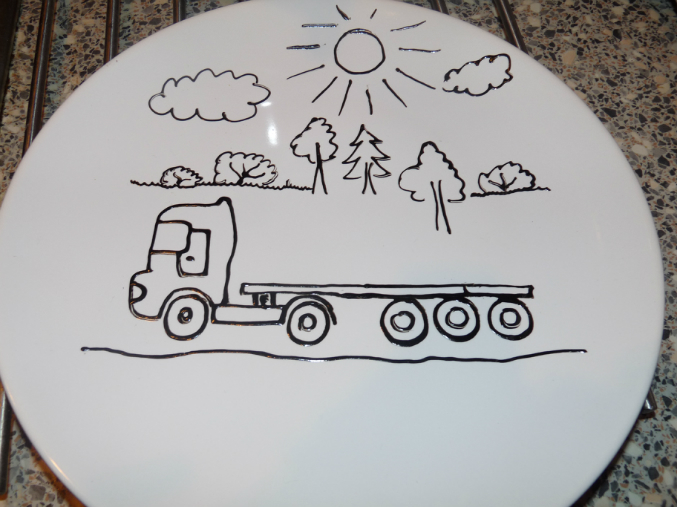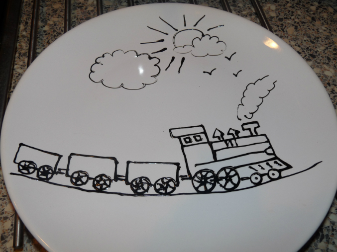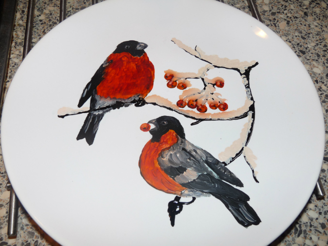 рисовала красками по керамике на икеевских тарелках, потом запекала в обычной духовке