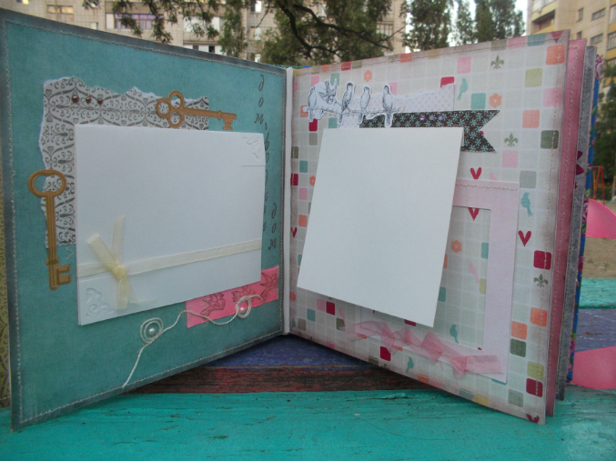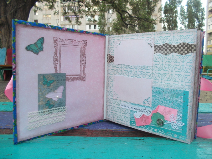 Второй разворот. На каждой страничке уместяться по одной фотографии или по несколько маленьких.