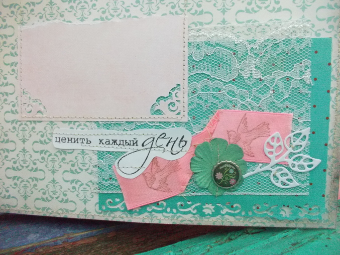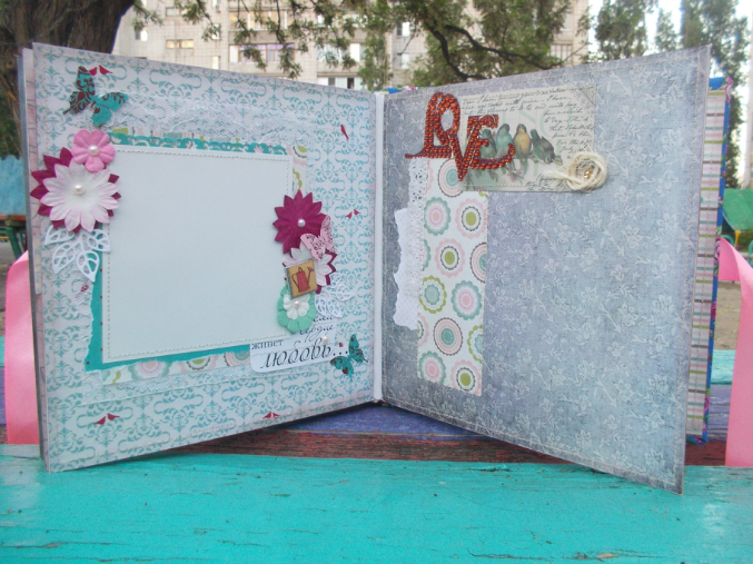 Первый разворот. На первой страничке можно вставить одну большую фотографию или 2 маленьких. На второй страничке для фото 9*13.