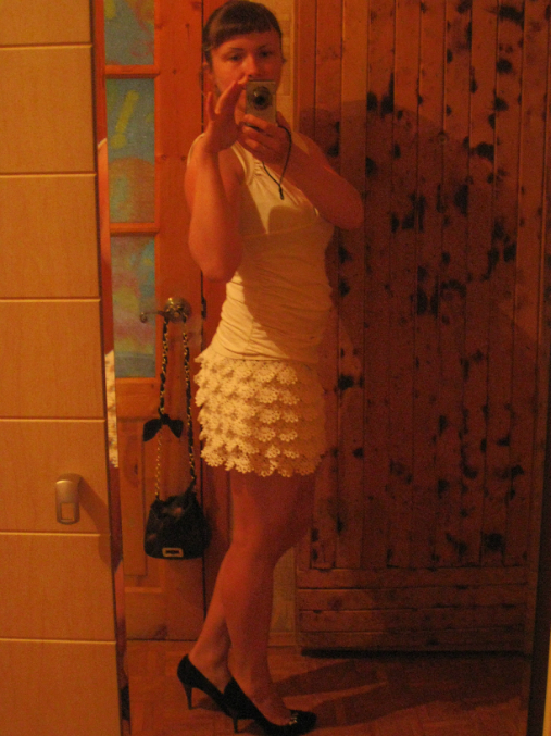 Вот наконец еще один пунктик моих вязальных планов выполнен))) Захотелось связать себе юбочку с рюшами крючком, захотела - получите) Это наверное самая сложная вещь, которую я когда-либо вязала, и в целом результатом довольна, хотя есть и недочеты.