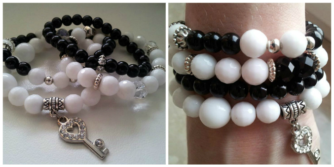 в зависимости от размера камней..и от самих камней.. я могу такой сделать из агатов- тогда цена будет 20 латов за три браслета. 4 браслета- 24 лата..а если делать просто из черно-белых камней, то .. намного дешевле .. могу и за 10 латов сделать, но это будут просто стекляшки..хотя тоже будет очень красиво выглядеть )